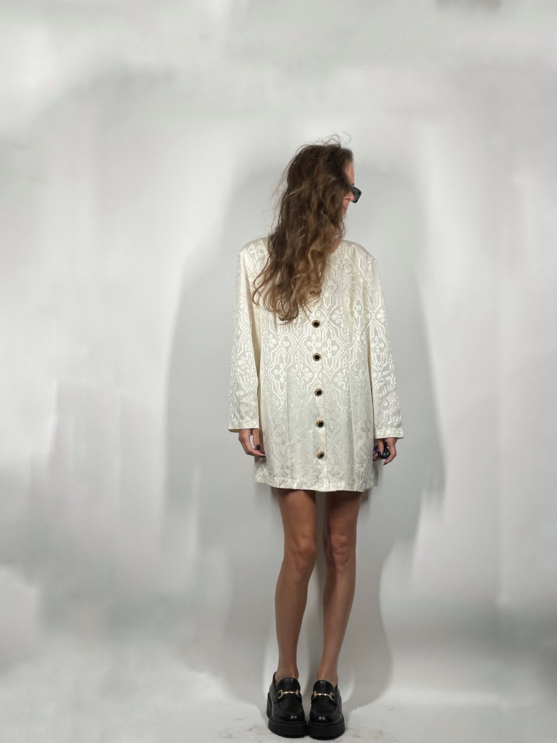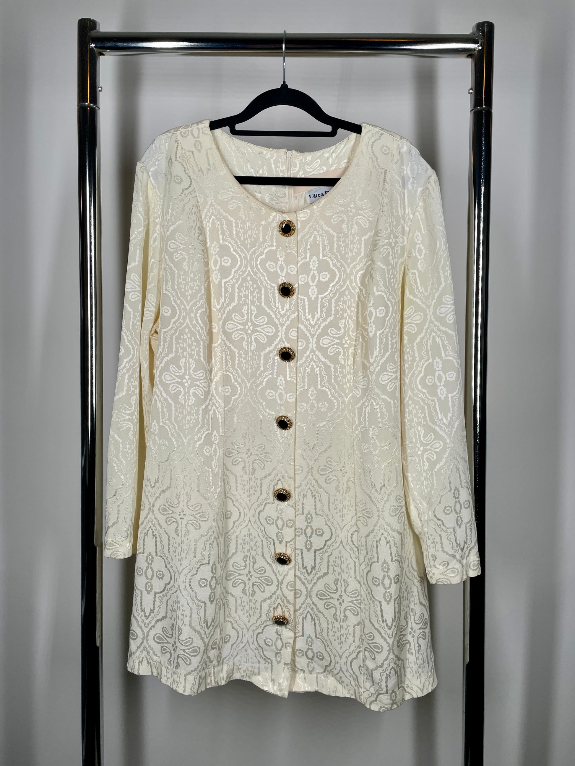 Heavy on the Chanel vibes. Styled with chunky loafers here, but would be just as sharp with little heels or biker boots, draped in pearls. Used to have a ruffled hem and oversized shoulders — now it’s sharp, simple, and ready