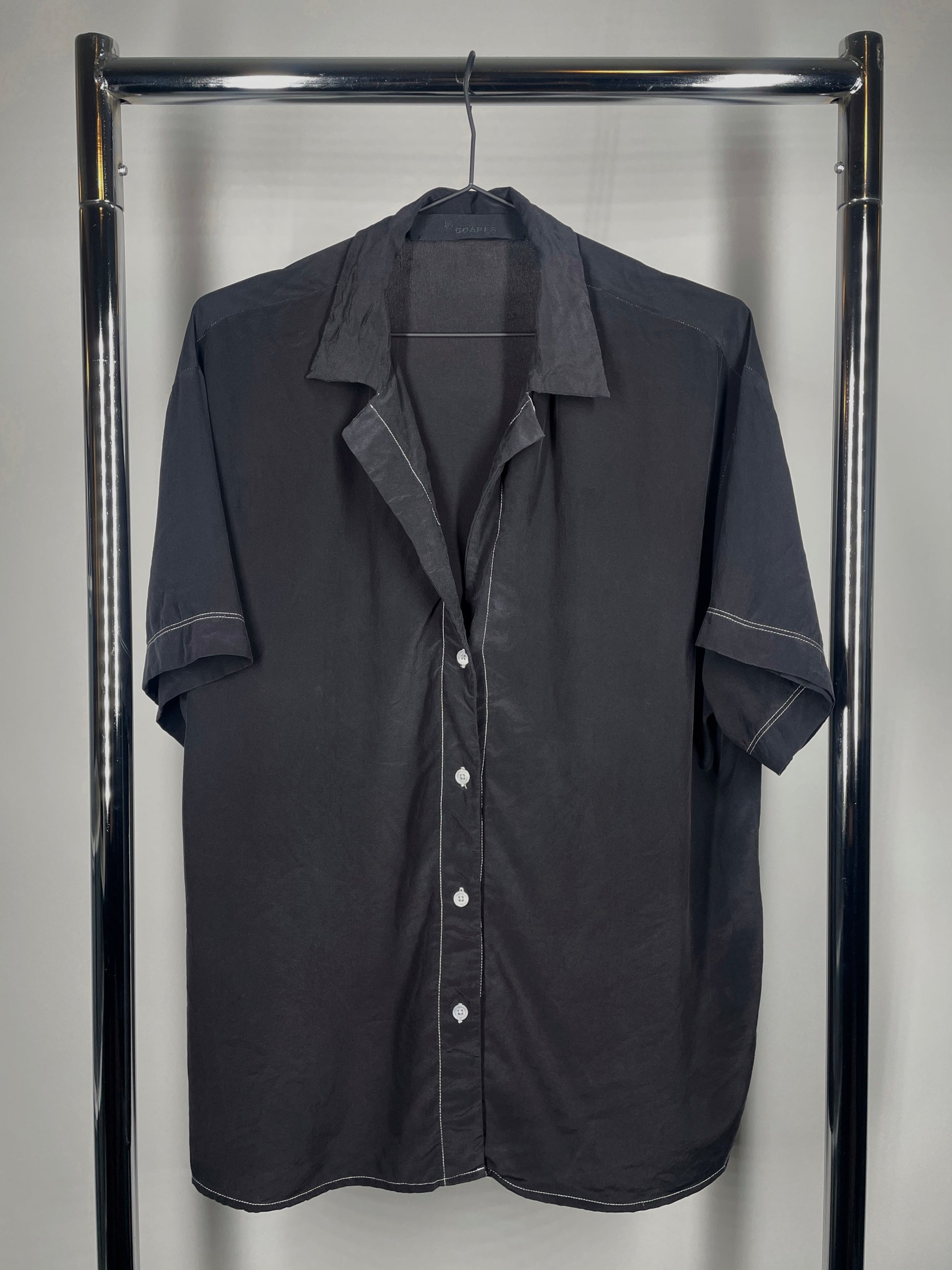 Contrast Stitching Silk Blouse Button Up