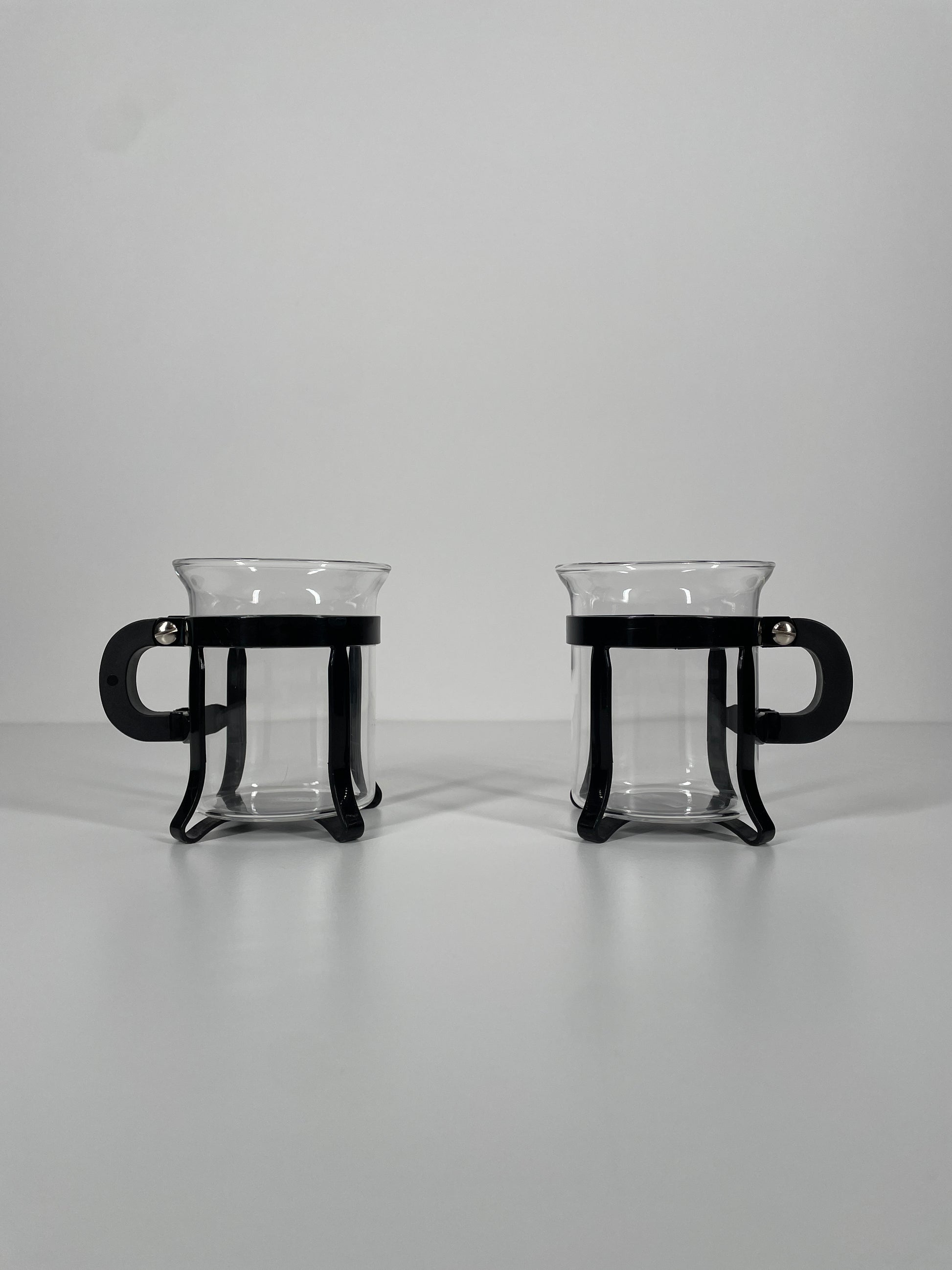 Vintage Bodum Glass Cups with Black Frame — Set of 2