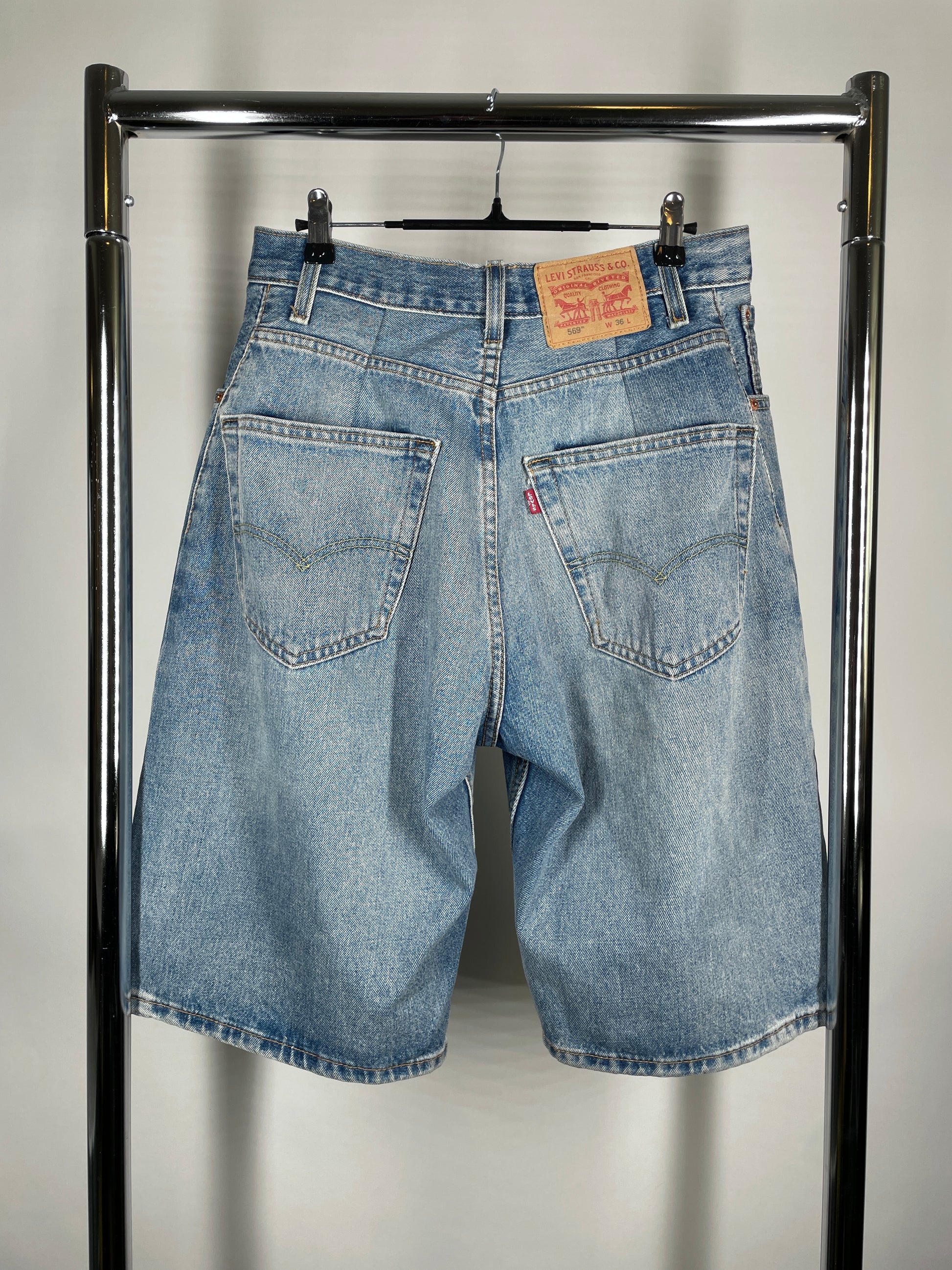 Vintage Levi’s 560 Baggy Denim Shorts — Light Wash (Altered to Fit 32”)