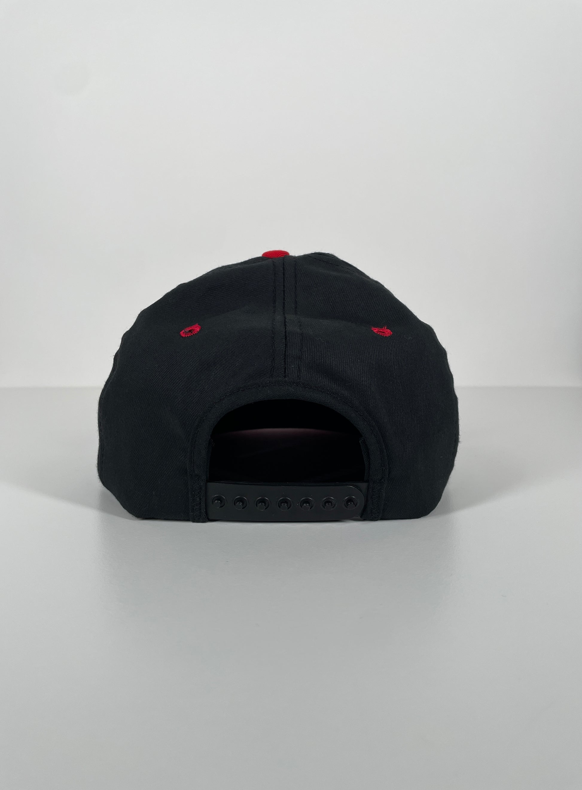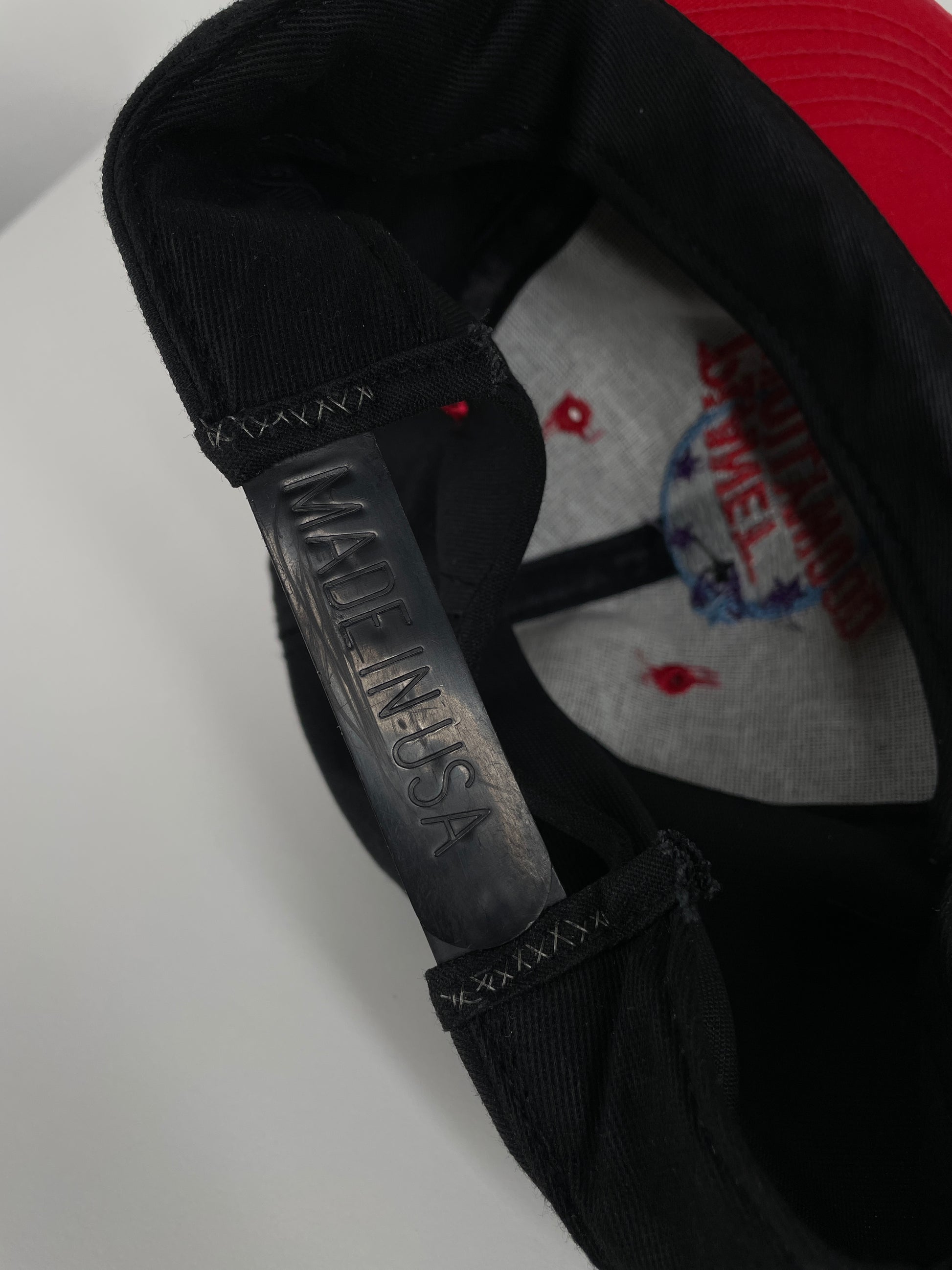 Classic 90s nostalgia from one of the era’s most iconic restaurant chains. This vintage Planet Hollywood cap features bold embroidered graphics on a black crown with a contrasting red brim and button accents. Made in the USA with an adjustable snapback closure.